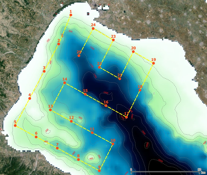 MREA 2016 continues and enlarges the previous oceanographic survey MREA 2014 on board of the hydro-oceanographic Navy vessel “Galatea”. The survey was useful to validate the forecasting numerical models of surface and deep ocean currents offshore Taranto. Moreover, the project will realize repeated measurements in the same area in different seasons in order to improve and calibrate the oceanographic forecasting modelling while taking into account sea seasonal variability.