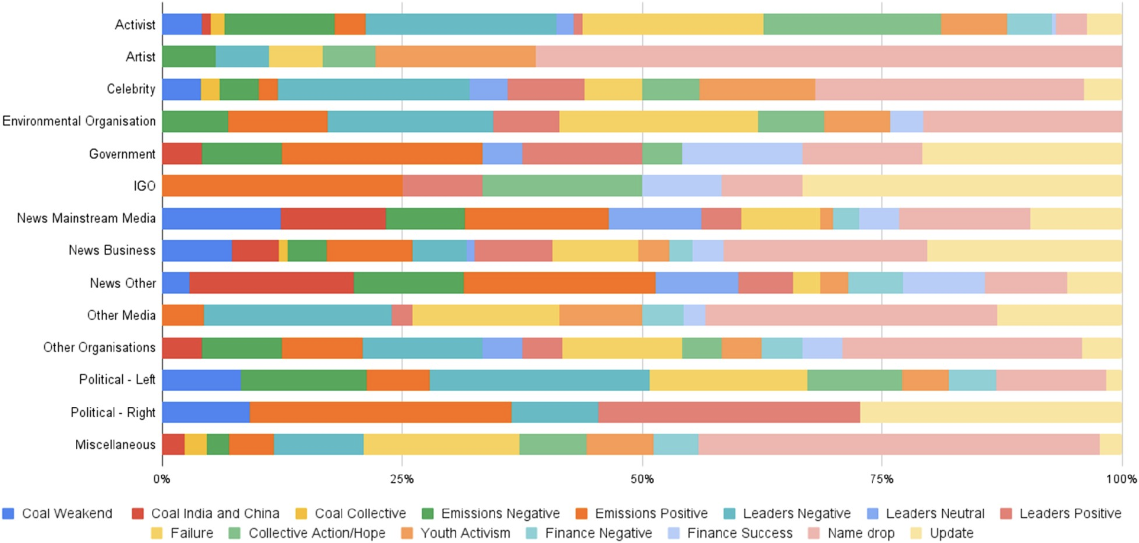 The main result emerging from the research is that mainstream media portrayed the summit as a step in the right direction, with several major outlets calling it a success, whereas key figures and thought leaders on social media were far more critical of the summit, characterizing it as a failure when it comes to reaching global mitigation and adaptation goals.