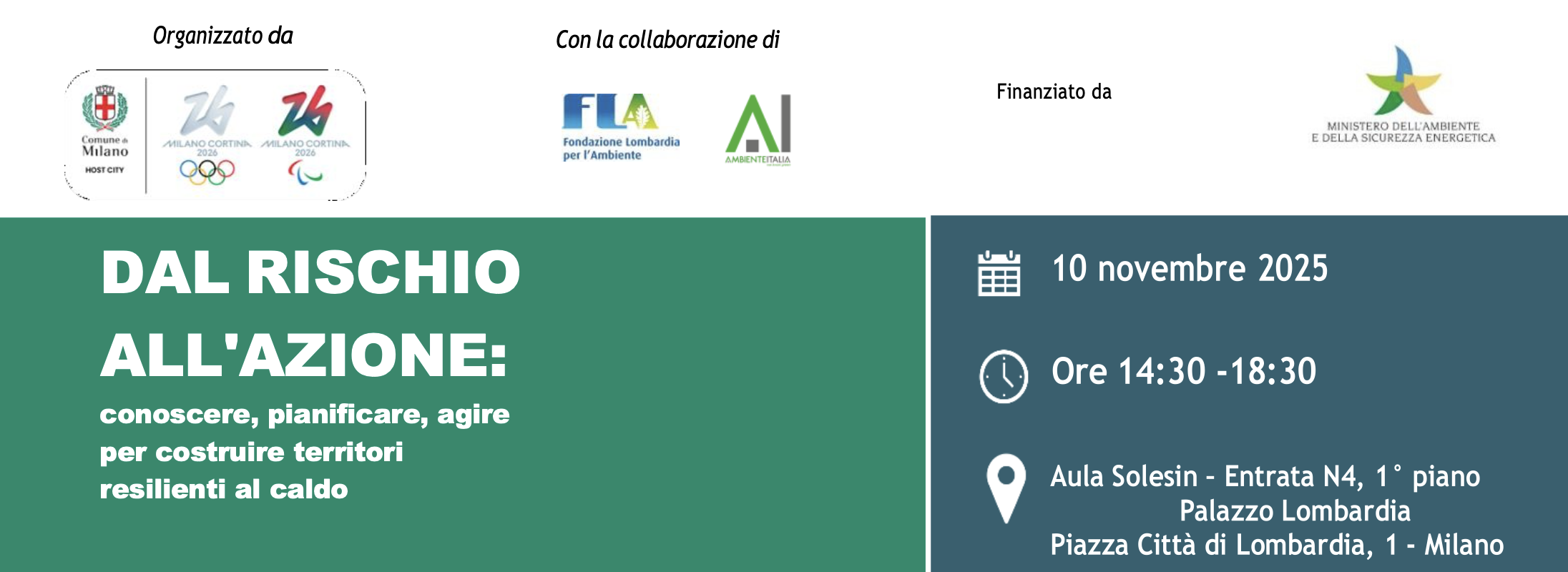 L’iniziativa nasce dal percorso di collaborazione sviluppato negli ultimi mesi tra Fondazione Lombardia per l’Ambiente, Ambiente Italia e altri partner istituzionali, nell’ambito del Programma Sperimentale di Adattamento ai Cambiamenti Climatici in ambito urbano, promosso e finanziato dal Ministero dell’Ambiente e della Sicurezza Energetica (MASE).