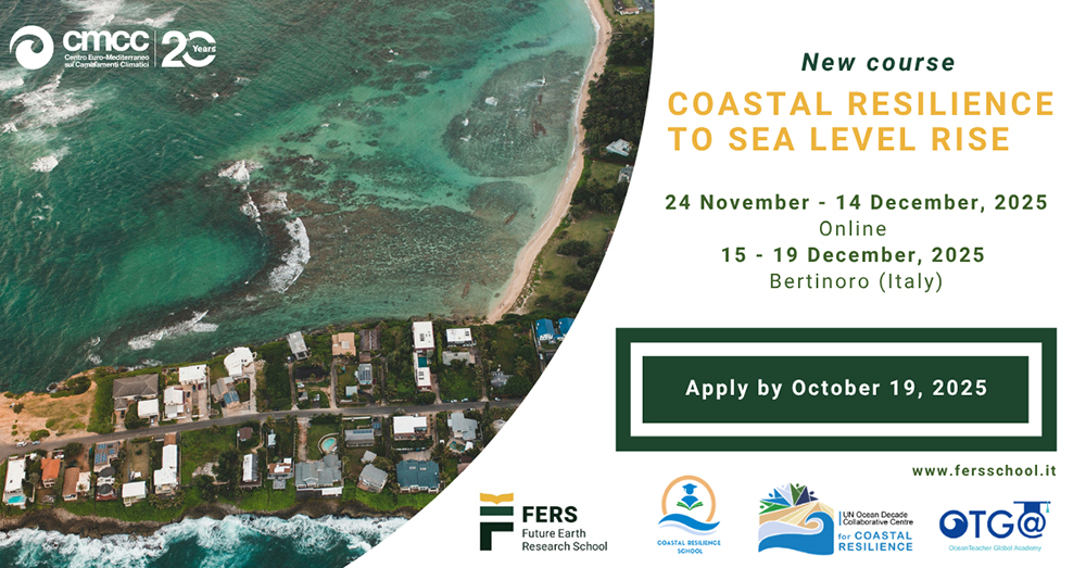 This hybrid course, organized by the Future Earth Research School of the CMCC Foundation and the Decade Collaborative Centre for Coastal Resilience (DCC-CR) in collaboration with the supercomputing center CINECA, offers a comprehensive and interdisciplinary in-depth analysis of the physical, environmental, and socio-economic dimensions. It explores the driving physical processes as well as the human and ecological impacts.