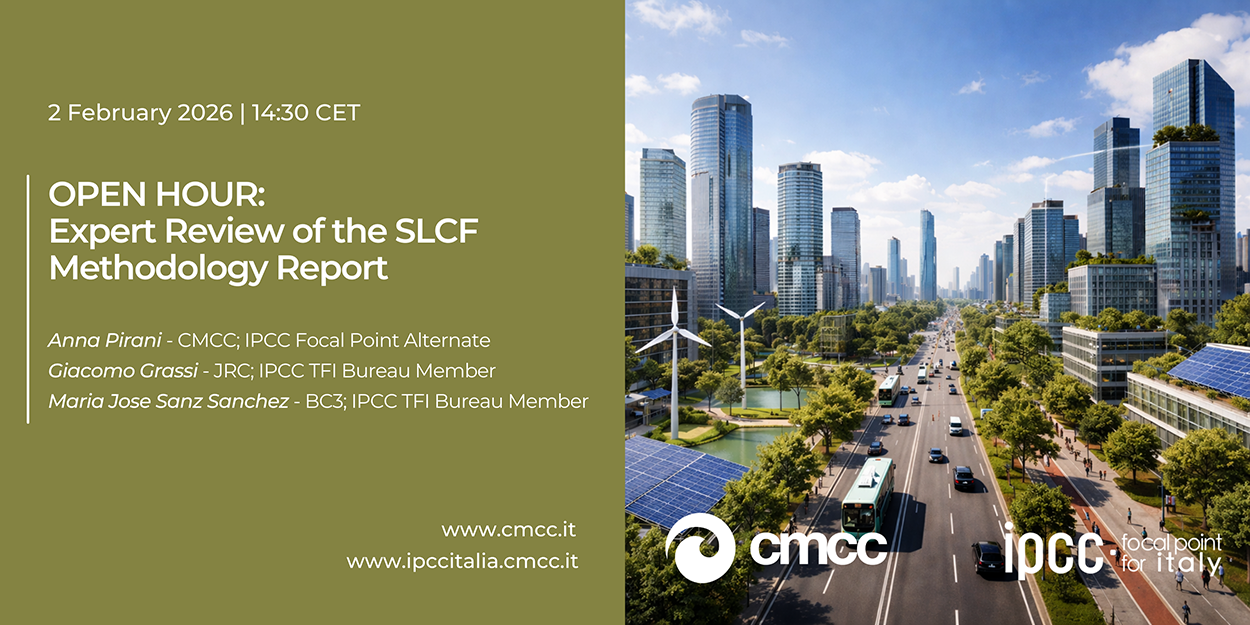 The webinar will be moderated by Anna Pirani, CMCC and Focal Point alternate for Italy, who was recently nominated Lead Author for Chapter 1 of the Working Group (WG) on Impacts, adaptation, and vulnerability of the IPCC Seventh Assessment Report. Dr. Pirani also served as executive editor of the IPCC Special Report on Global Warming of 1.5°C and the IPCC Sixth Assessment Report (AR6) in Working Group I, and was an author of the IPCC AR6 Synthesis Report.