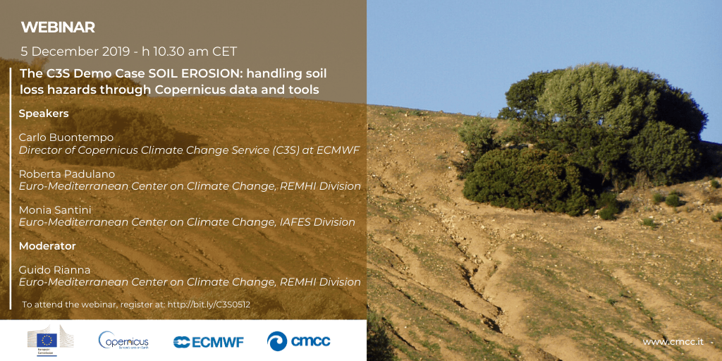 On the occasion of World Soil Day 2019 (#WorldSoilDay) and its campaign “Stop soil erosion, Save our future”, the webinar will introduce both the framework of C3S and the soil erosion topic in the context of EU initiatives and policy directives, and it will outline the Demo Case objectives and preliminary design.