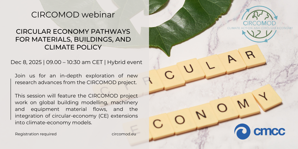 This session, co-organized by CMCC, will showcase work on global building modelling, machinery and equipment material flows, and the integration of circular-economy (CE) extensions into climate–economy models.