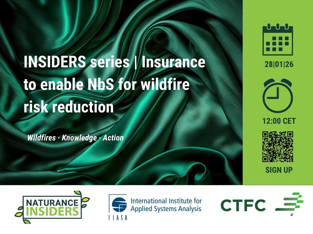 This Lunch Break Seminar, organised by IIASA in the framework of NATURANCE project, explores how the insurance sector can enable the transition from reactive fire suppression to proactive, prevention-focused NbS.